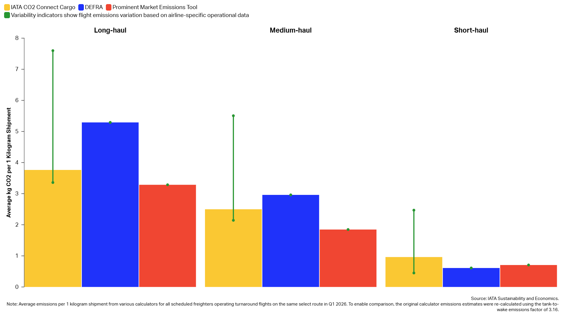 There are significant discrepancies in the flight emissions data available to shippers, depending on the emissions calculator used.