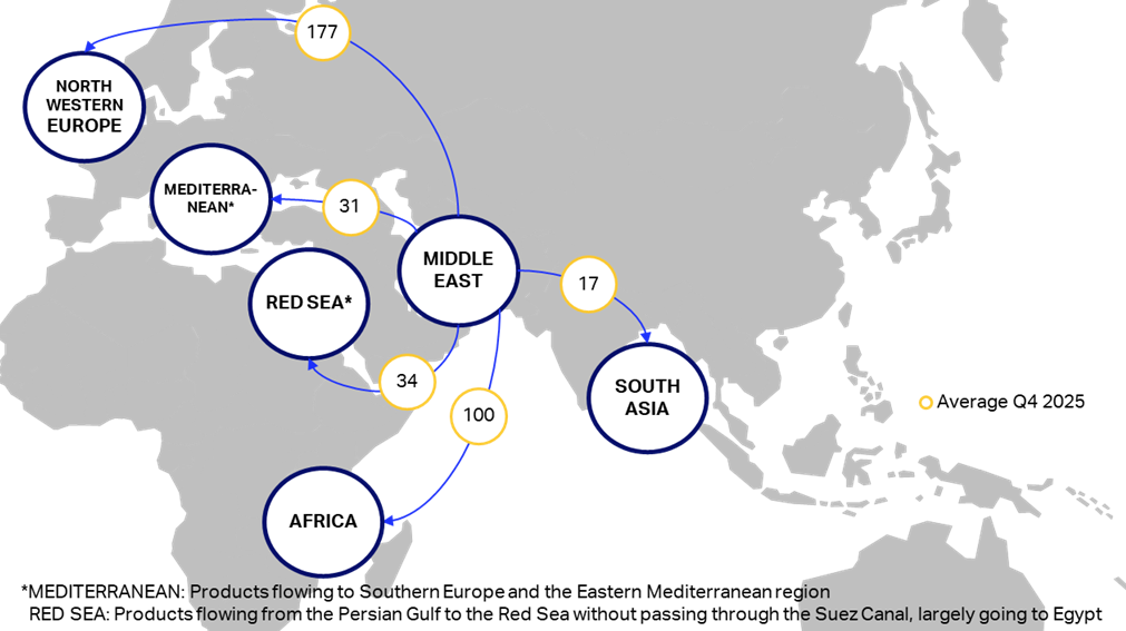 The Middle East is a critical region for trade and exports of crude oil and middle distillates such as diesel, gasoil, and jet fuel.