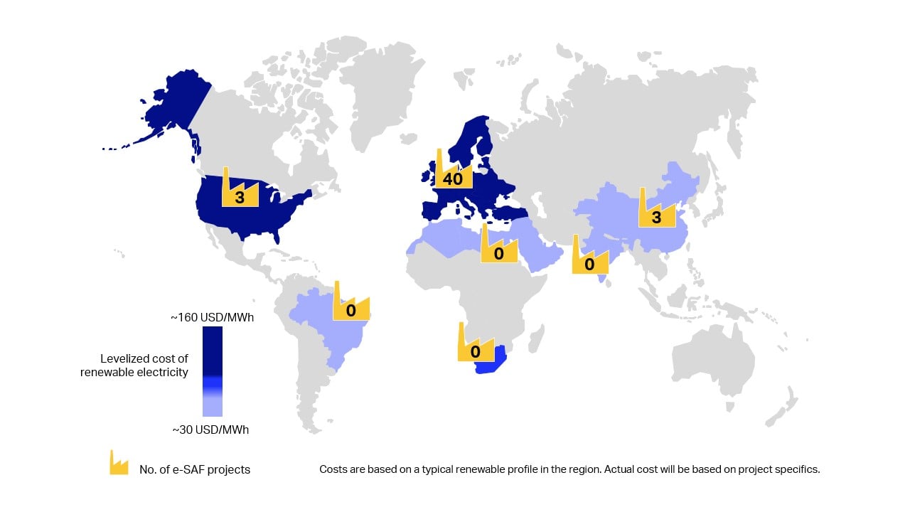 Are e-SAF Projects Emerging in Cost-Competitive Locations?