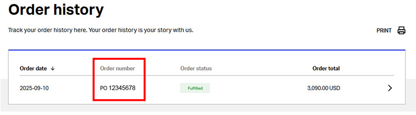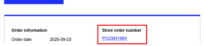 If you are paying for an order placed on the IATA Store or the IATA Training platform (e.g., instructor-led classroom course or self-study registration), to complete the payment, please enter your Store Order Number starting with 'PO'. It can be found in your 'Order history', or in the ‘IATA Store - Order receipt’ email you have received from ‘noreply@iata.org’, or, if you already have an invoice, on your Invoice under 'Your Reference' as shown below: