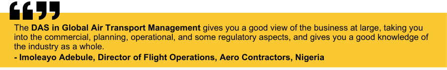 The DAS in Global Air Transport Management prides itself on enabling participants to gain knowledge through practice, learning through experience, and applying what is learned in real time. Valérie attributed this to the faculty members: “The quality and knowledge of the instructors is remarkable. They’re people from the industry, who have a lot of expertise, and they put theory and practice together to a high level.” Imoleayo agreed that this practical aspect is extremely valuable, “The simulations give you a near-realistic view of what is going on in the market. You can practice and see the results of your actions. For example, in the Airline Business Models simulation, where you run an airline in competition with other groups, we started off ok, but we changed the business model and it affected our profitability negatively. That was a great lesson!”